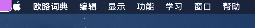 用了两年的欧陆词典,没更新过也没出过问题。前几天开始左上角这里突然出现一个紫色的小色块,看着很烦!这个色块只要是推出欧陆词典就没有了。我欧陆词典是从app store下载的,我已经把之前的卸载了然后安装了一个最新版的,还是这样!我也试过从网上下载,但打开之后依然会有这个色块。我也试过重启,没有用。这个色块目前对各种功能好像没啥影响,但是看着太难受了。欧陆词典好像很火,据说很多人用的都是欧陆词典。我也不想换成有道线上词典。大家欧陆词典有没有出现这种情况?怎么解决的?