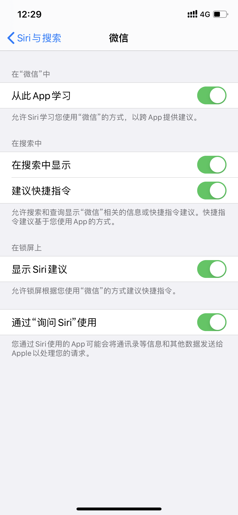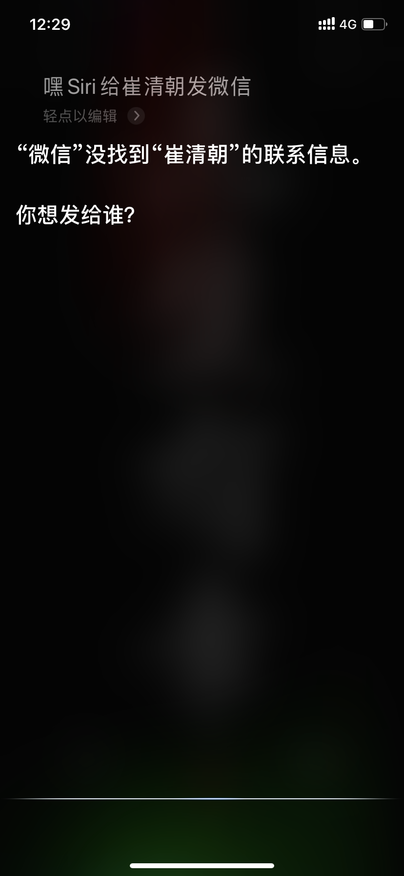 第一次呼siri给微信联系人发消息的时候,siri要求获取权限,我点错了点的否,然后设置里都是打开的,现在就是哪个人也发不了。
