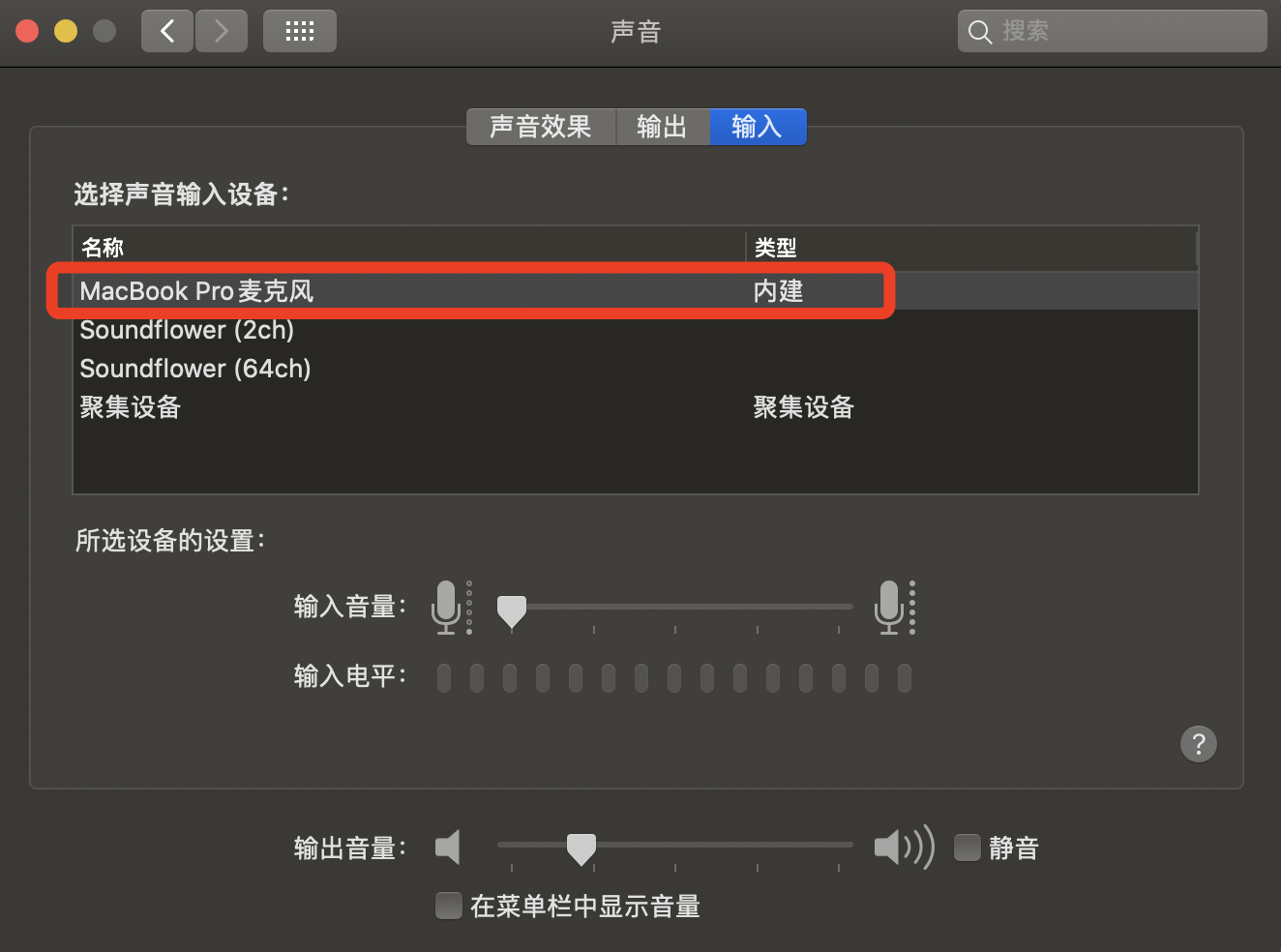 点击「输出」后,设置窗口会短暂卡死(系统也会很卡),然后「MacBook Pro麦克风」选项会消失,然后又重新出现,反复进行消失出现,无法设置。