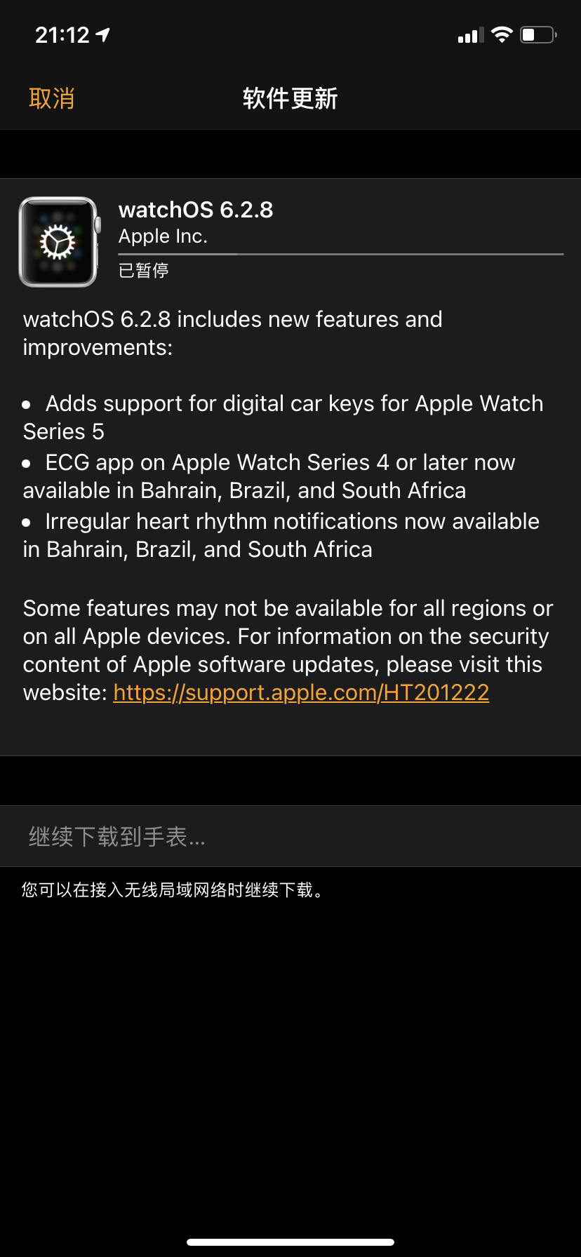 更新iwatch时iPhone已经接入无线局域网但仍然显示需要接入无线网才可以继续下载