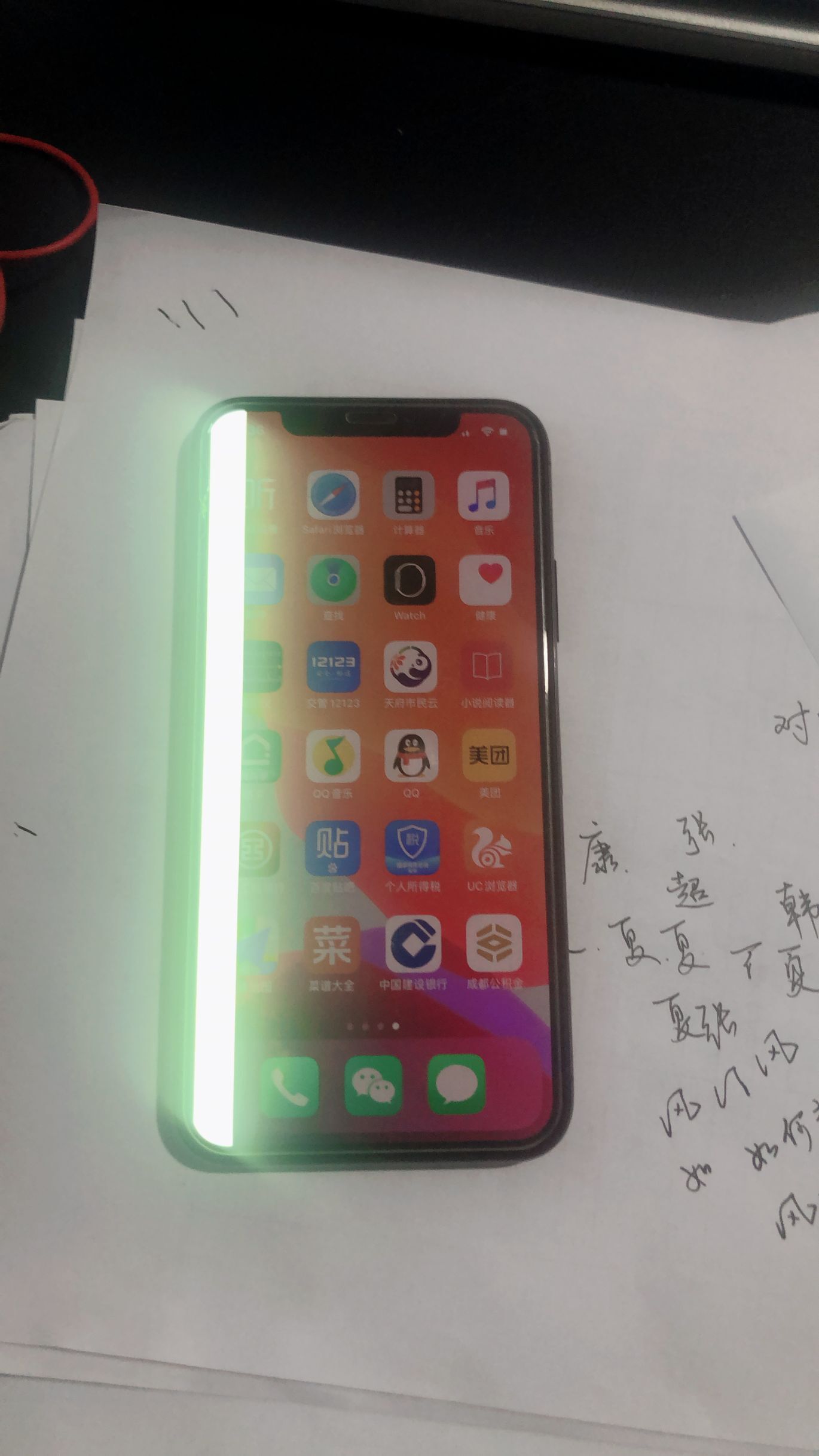 iPhone X屏幕摔了一下屏幕左侧出线竖向白条