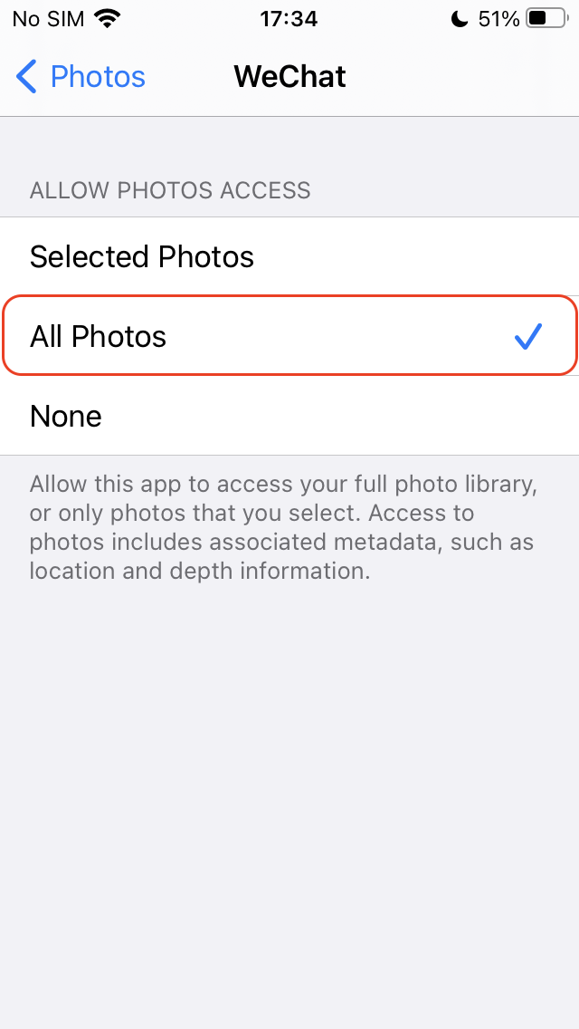请问题主是升级到 iOS14 Beta 版了吗? iOS14 加强了对于隐私的设置,试试在“设置(Settings)”-“隐私(Privacy)”-“照片(Photos)”中将微信(WeChat) App 选择到“所有照片(All Photos)”