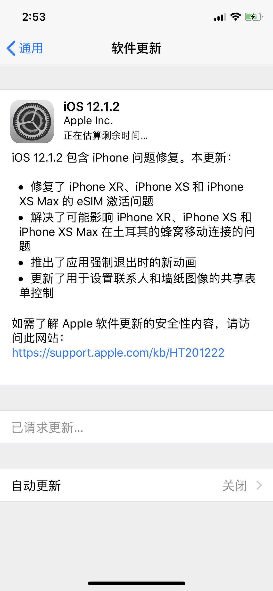 一直卡在iOS12.1.2的状态很久了,希望能尽快更新。
