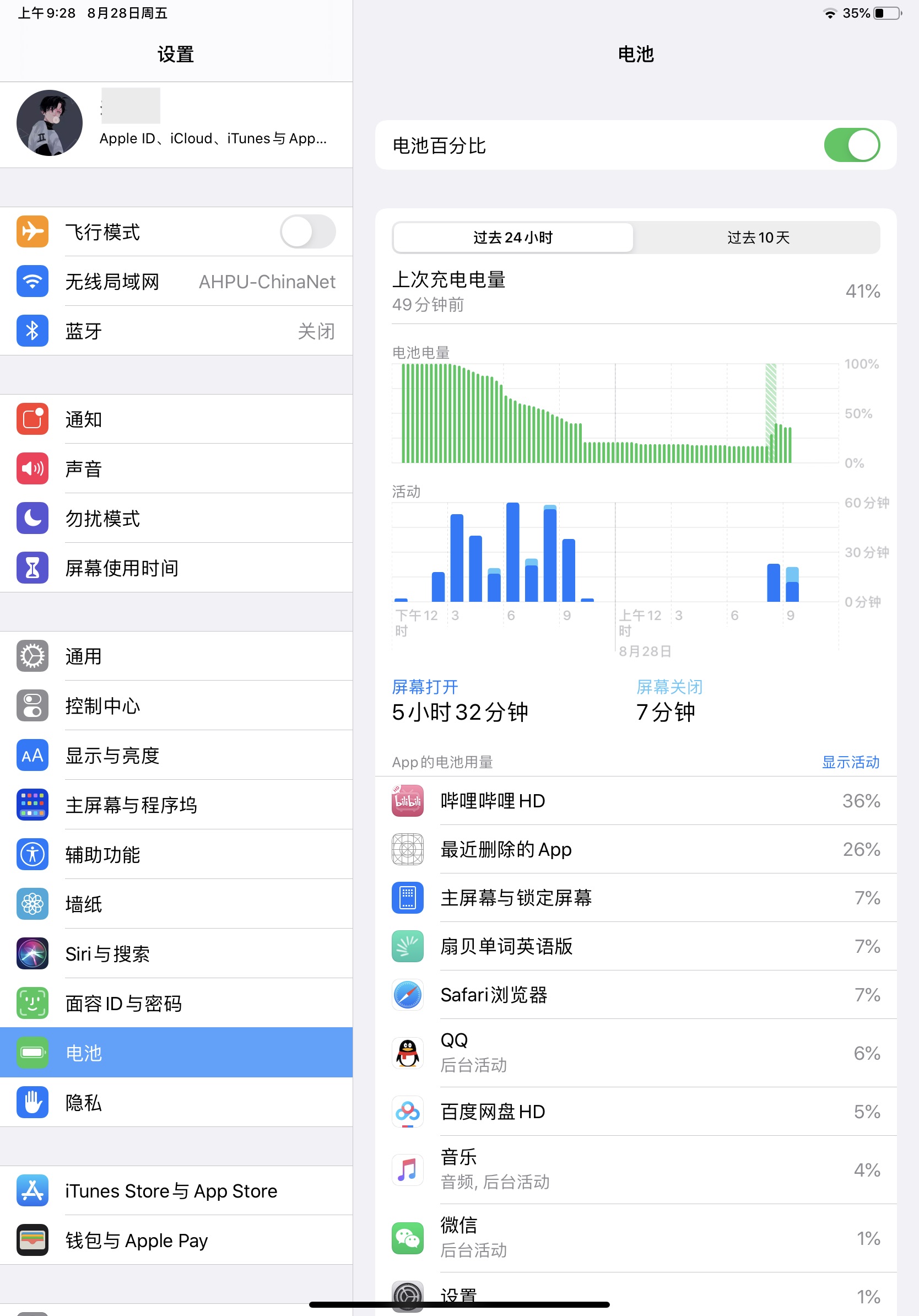 我的iPad Pro2020今天在使用过程中,还剩下百分之四十电量,然后自动关机,无法开机,插上充电器才可以开机,显示还剩百分之十的电,我将充电器去除,过了一会又关机了,这次重新开机,剩下百分之四十的电,这台iPad Pro在使用过程中也有一些问题,比如充电到百分之八十几,一下就跳到百分之百,夜里不用的时候,待机耗电也会跳电,从百分之四十到百分之十几