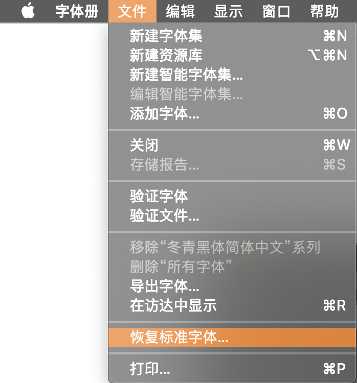 以下用户的用户个人资料: 亲爱的璞璞 亲爱的璞璞 用户级别: 级别 6 11,545 积分 2020年9月3日 上午9:07 回应 佳乐256 题主先试试在“访达”-“应用程序”中找到“字体册”打开,然后点击菜单栏“文件”-“恢复标准字体”看看是否有改善。另外可以参考一些官网的技术支持文稿:使用“字体册”恢复 Mac 随附的字体 - Apple 支持如何在 Mac 上安装和移除字体 - Apple 支持 回复 链接