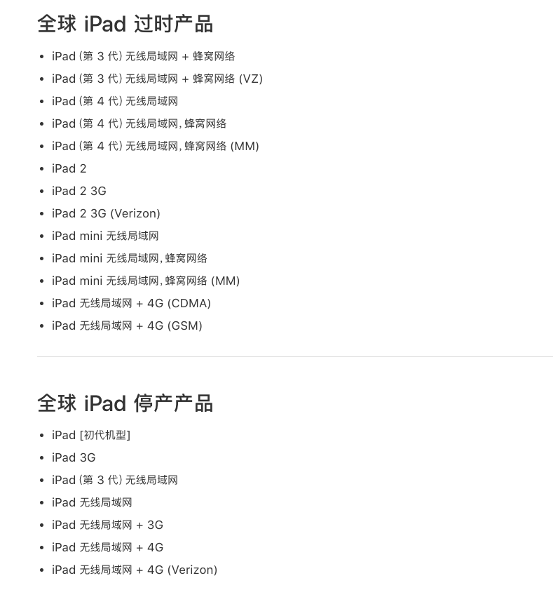 如果某些 iPhone、iPad、iPod 或 Mac 产品已不再销售,这些产品的所有者可在产品停售后 5 年内(或法律规定的更长期限内)从 Apple 或 Apple 服务提供商处获得服务和部件。Apple 已停止对某些在技术层面而言已停产的产品提供支持。
