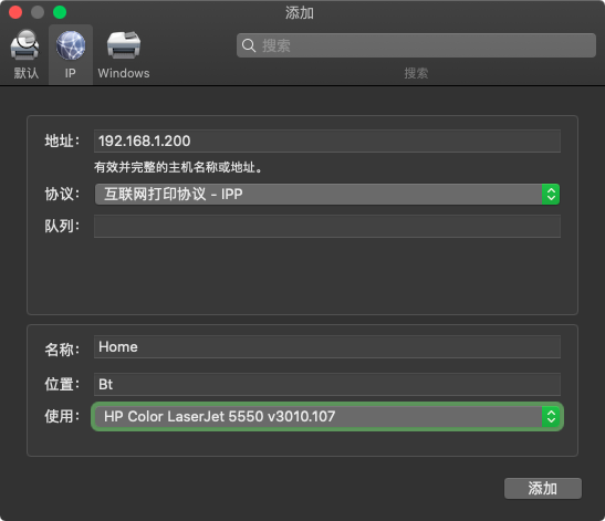 当然,还有很多问题可能导致失败,比如打印机的相关协议被禁止了;本机网络配置问题(VPN或者Proxy等);打印机最好是固定IP地址,否则一旦改变,又要设置一次等等。要想最终成功,需要了解具体的网络和机器情况。