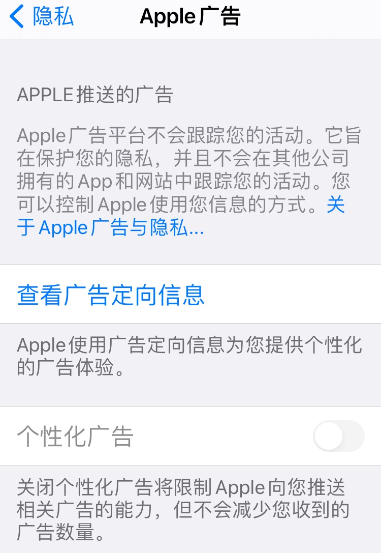iOS 14更新正式版后,隐私设置中的允许追踪开关无法打开,apple广告开关也无法打开。