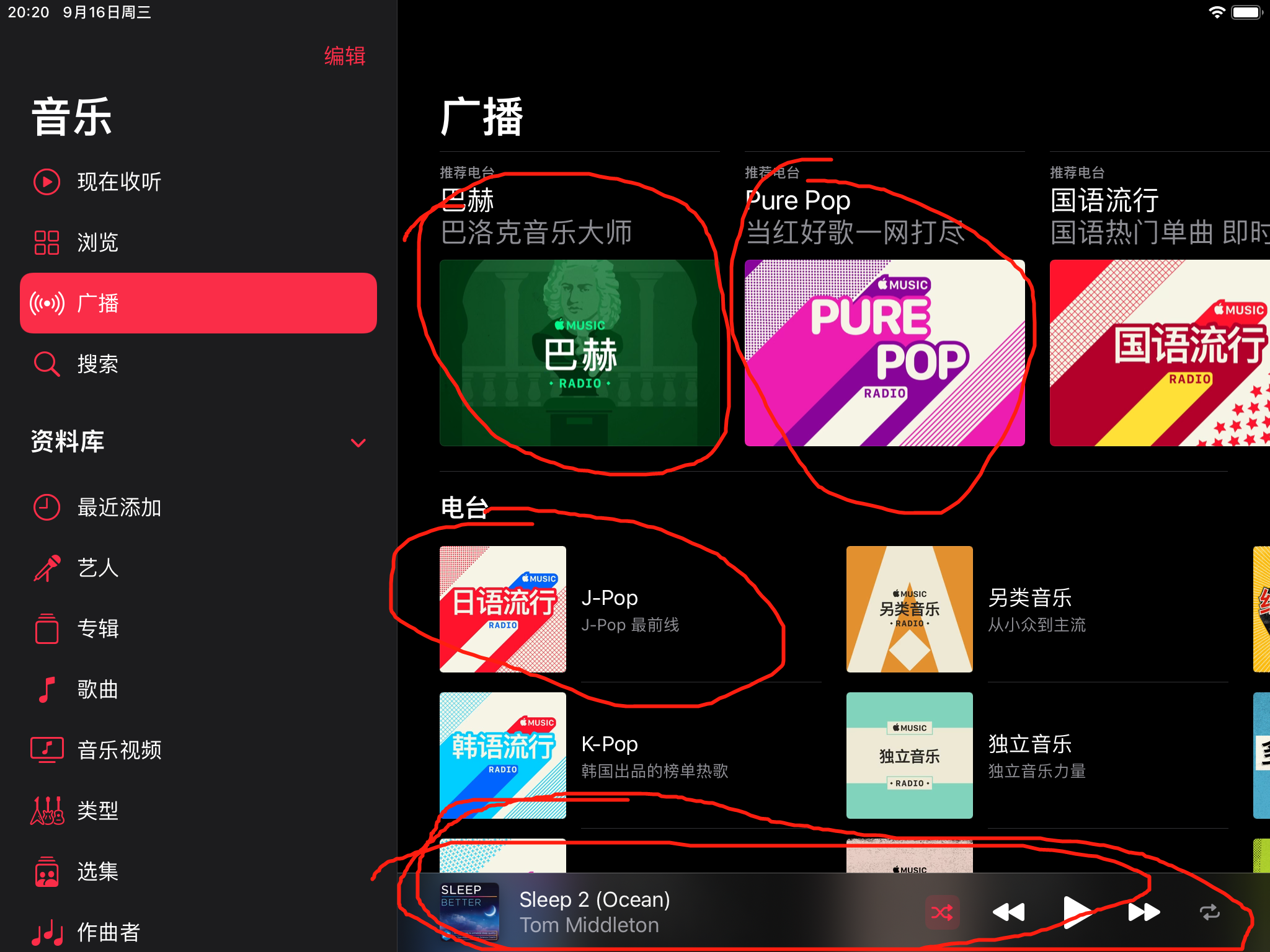 在音乐(Apple music)中点击"现在收听"、“广播”中的内容,以及正在播放的内容时(图中红色圈的位置),软件会闪退。