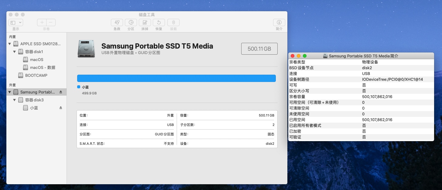 外置移动硬盘:三星固态移动硬盘t5(支持Mac),apfs格式