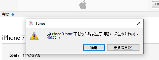 2、Mac上用访达下载固件更新:可以正常下载固件,可以连接手机,检测成功开始更新,但是手机上要输入解锁密码的时候,手机可以正常输入或者删除,输入错误也会有跳动提醒,但是没有下一步或者确定的按钮,电脑也没有反应。退出后电脑上就会显示未知错误4037。升级失败