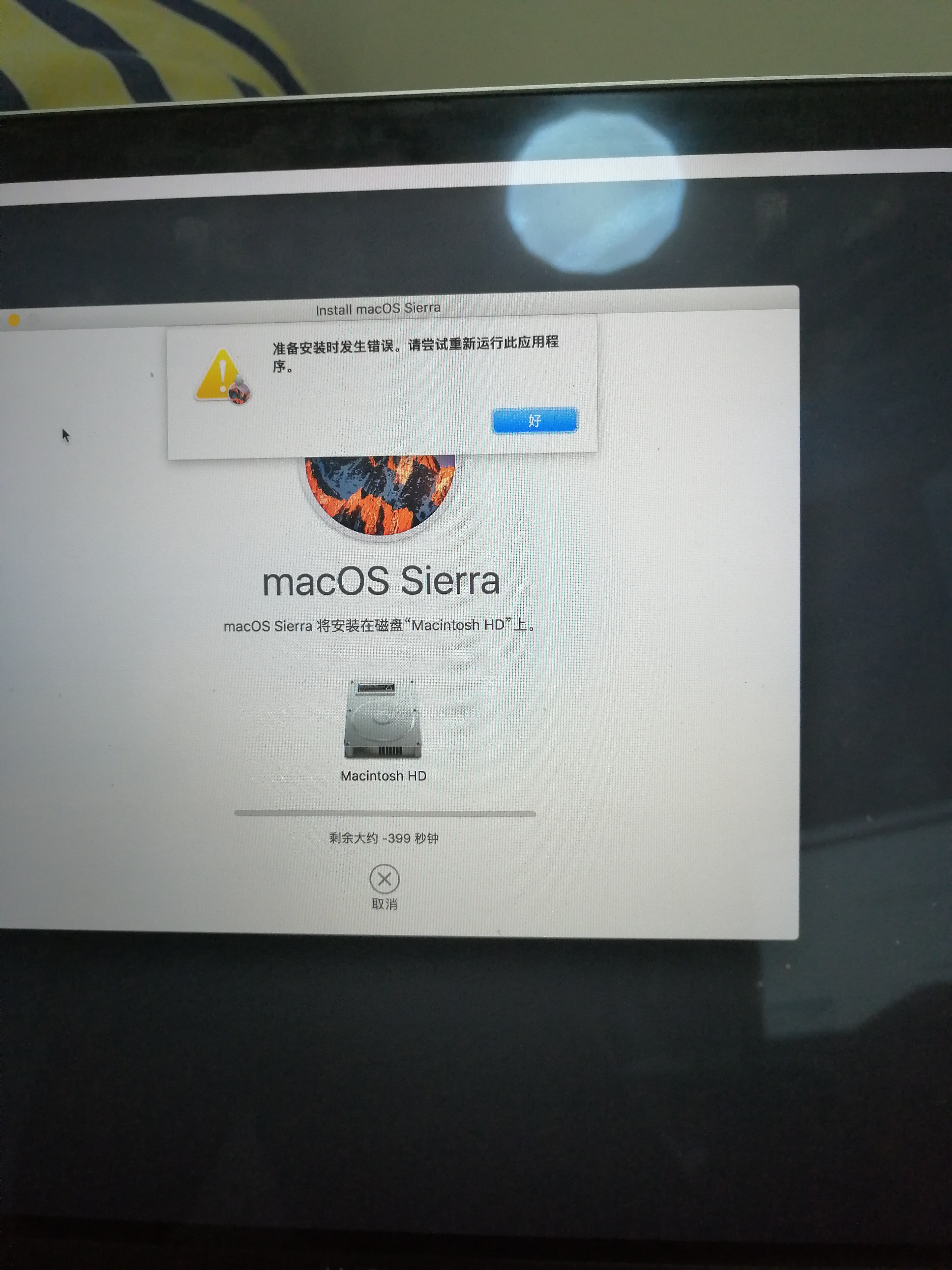 许久没用的笔记本,今天将一些文件转移备份后。 抹除了硬盘所有数据。 抹除成功后安装系统,就报出了(无法与恢复服务建立链接),可能网络问题,然后重启了一下。 后黑白地球一直在转,然后出现了macos实用工具栏,然后继续重新安装系统,然后却发现默认安装的系统是macOS Sierra的版本,不管是哪个版本的吧,就点击安装, 可下载完成后又报错 无法进行安装。()