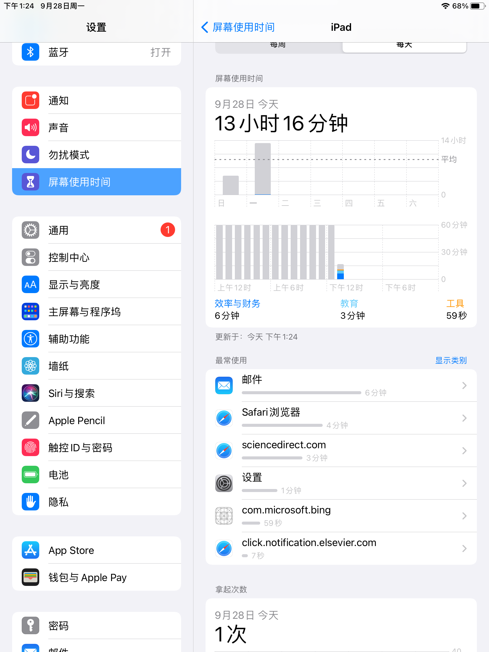 iPad屏幕使用时间显示错误,总时间很离谱,但下面的各软件使用时间细节又是对的