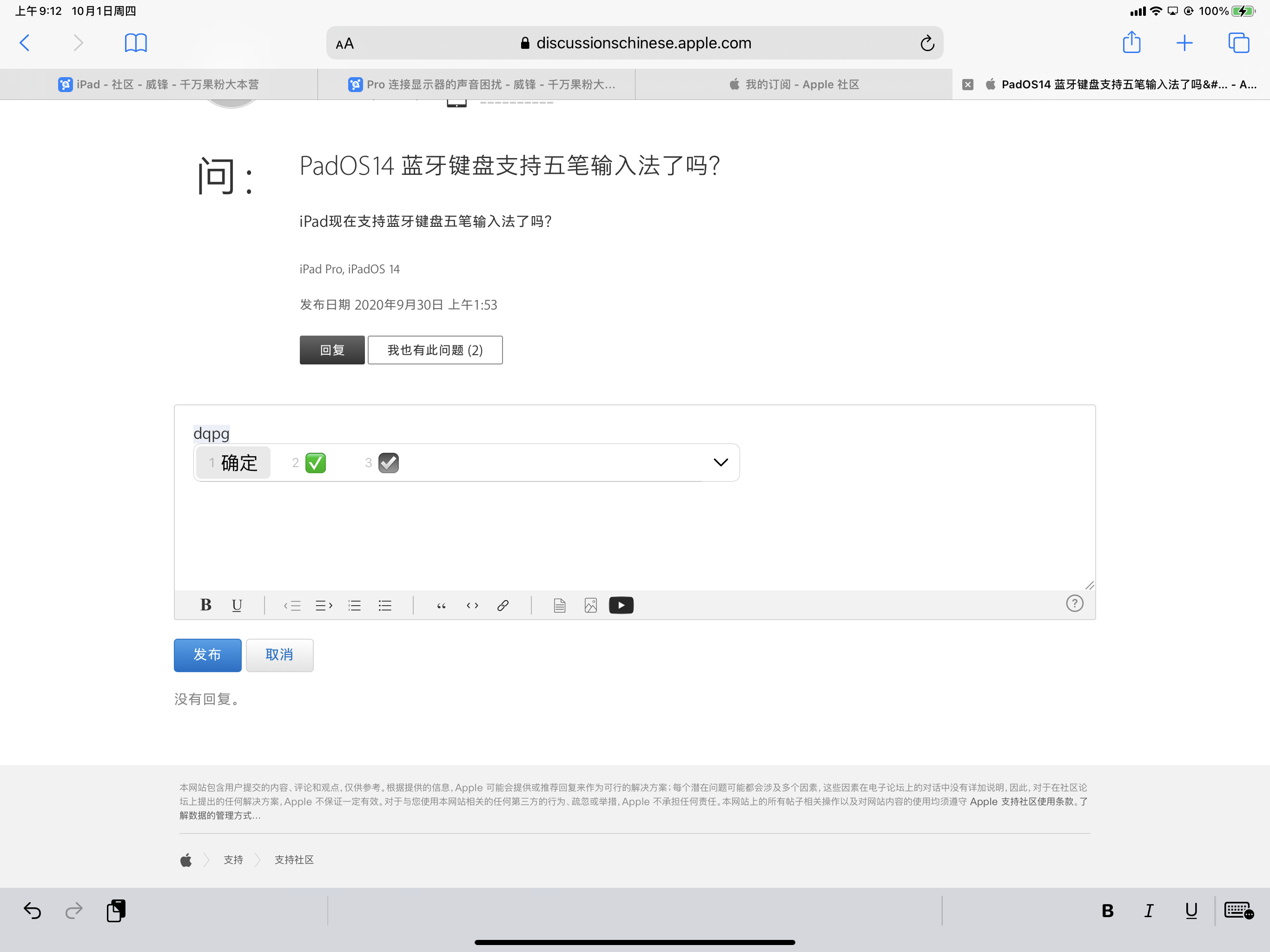 PadOS14 蓝牙键盘支持五笔输入法了吗?