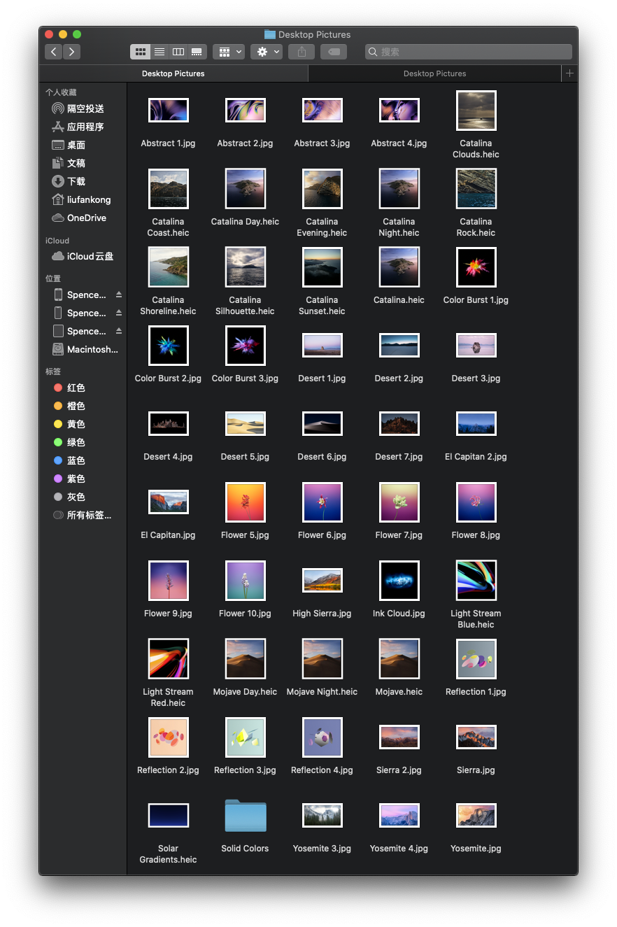 我电脑里一处是硬盘-系统-资源库-Desktop Pictures (A处),另一处是硬盘-资源库-Desktop Pictures (B处)