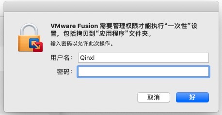 vmware 需要管理权限才能执行“一次性”设置,包括拷贝到“应用程序”文件夹