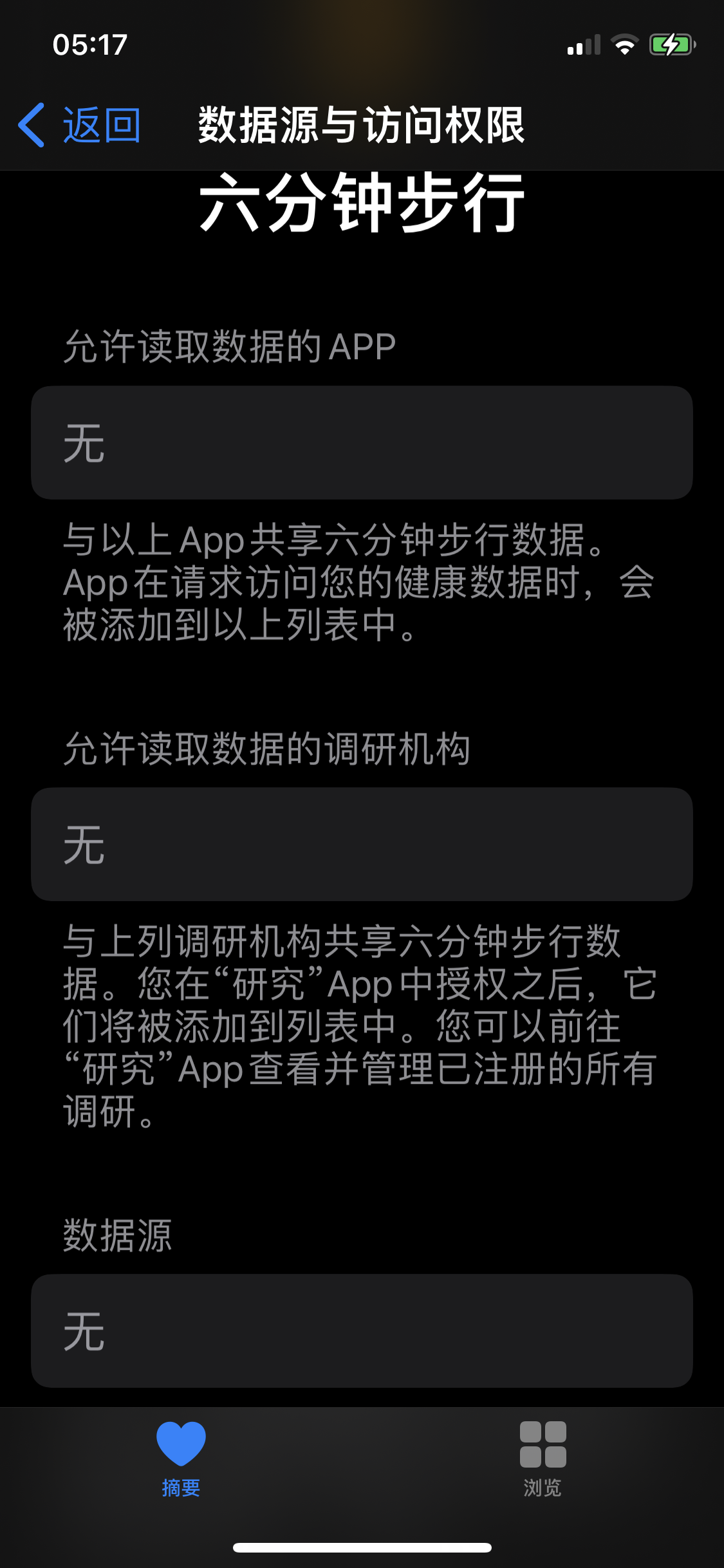2、Apple Watch Series 6, 无法使用六分钟步行,数据源显示无