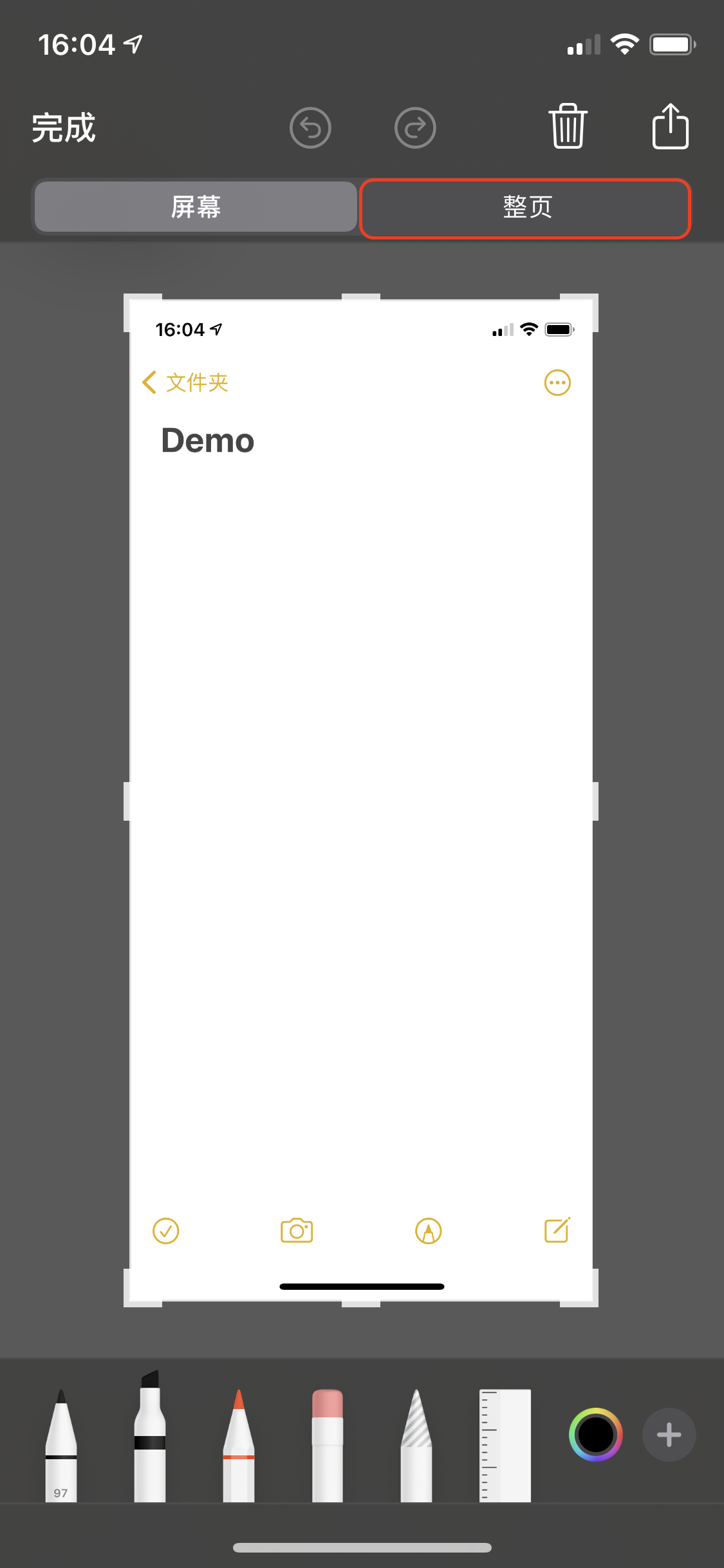 如果题主是希望将当前整个备忘录的内容都截下来可以试试在截屏后点开左下角的截屏的预览,然后点击“整页”再点左上角“完成”来保存。