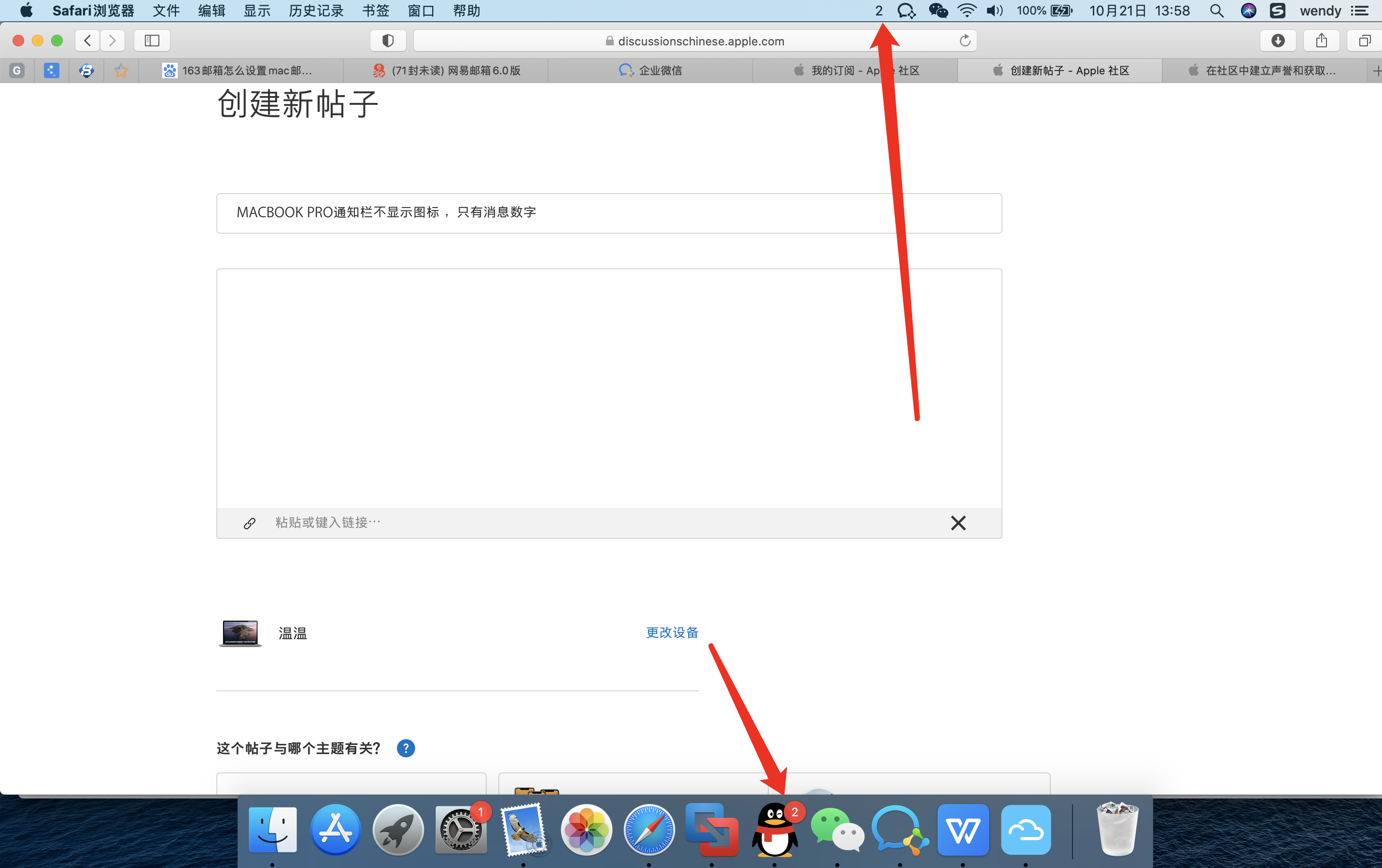 MACBOOK PRO通知栏不显示图标 ,只有消息数字