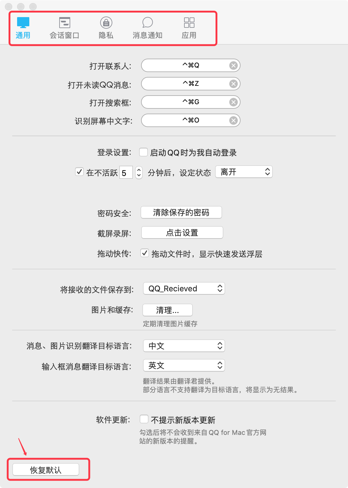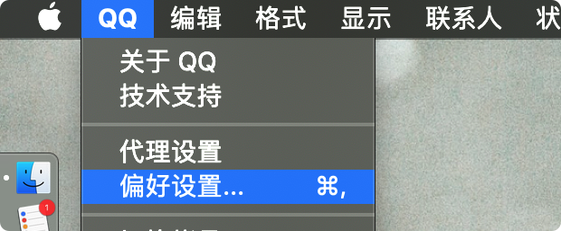 可以点击 QQ -- 偏好设置 进入 qq的设置面板;