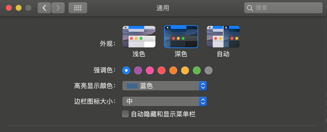 1、10.14 以上的系统,修改系统外观为黑暗模式: