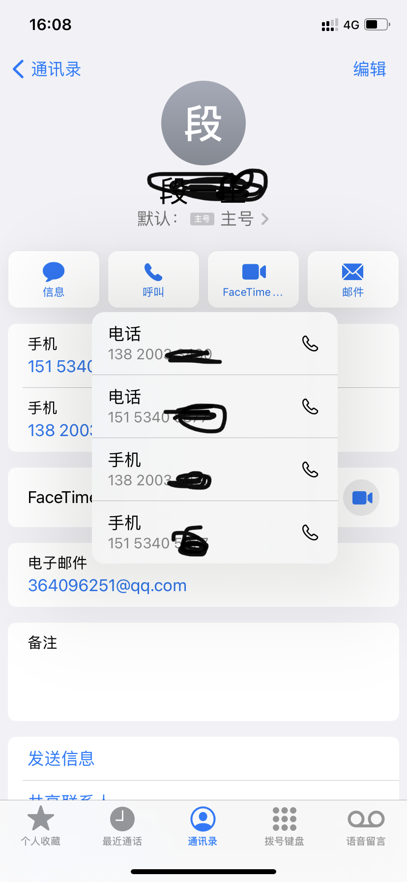 点开联系人,点击呼叫按钮没有反应,长按呼叫按钮会出现两个相同的号码,但是点第一条号码拨打不出去,第二组可以拨打出去