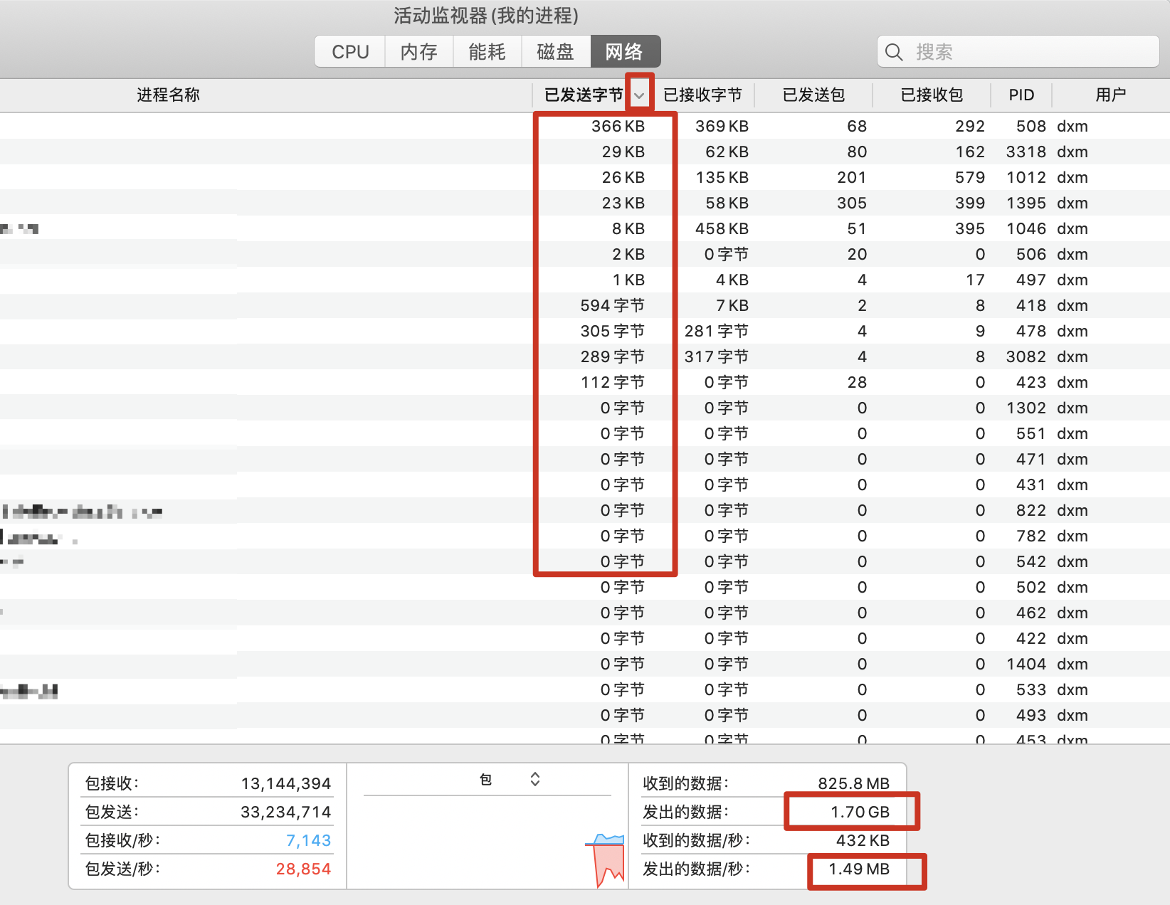 每秒的上传流量1.5M 应用列表中累计上行数据最多的服务 总计才366k 哪个服务在占用大流量上传 导致我网络非常卡顿,活动监视器里还没办法查到。