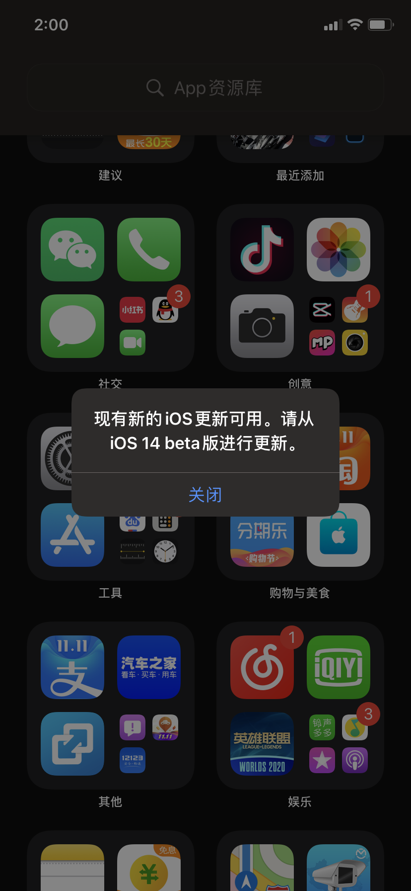 苹果iOS 14测试版反复出现"现有新的iOS更新可用,请从ios14beta版进行更新