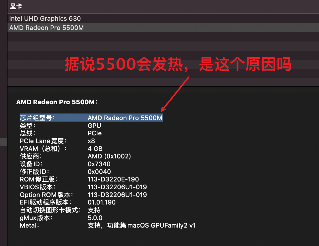 电脑配置i9+32G+5500M,有人说5600M就没问题,是这样的吗?苹果官方能出来解释吗?谢谢