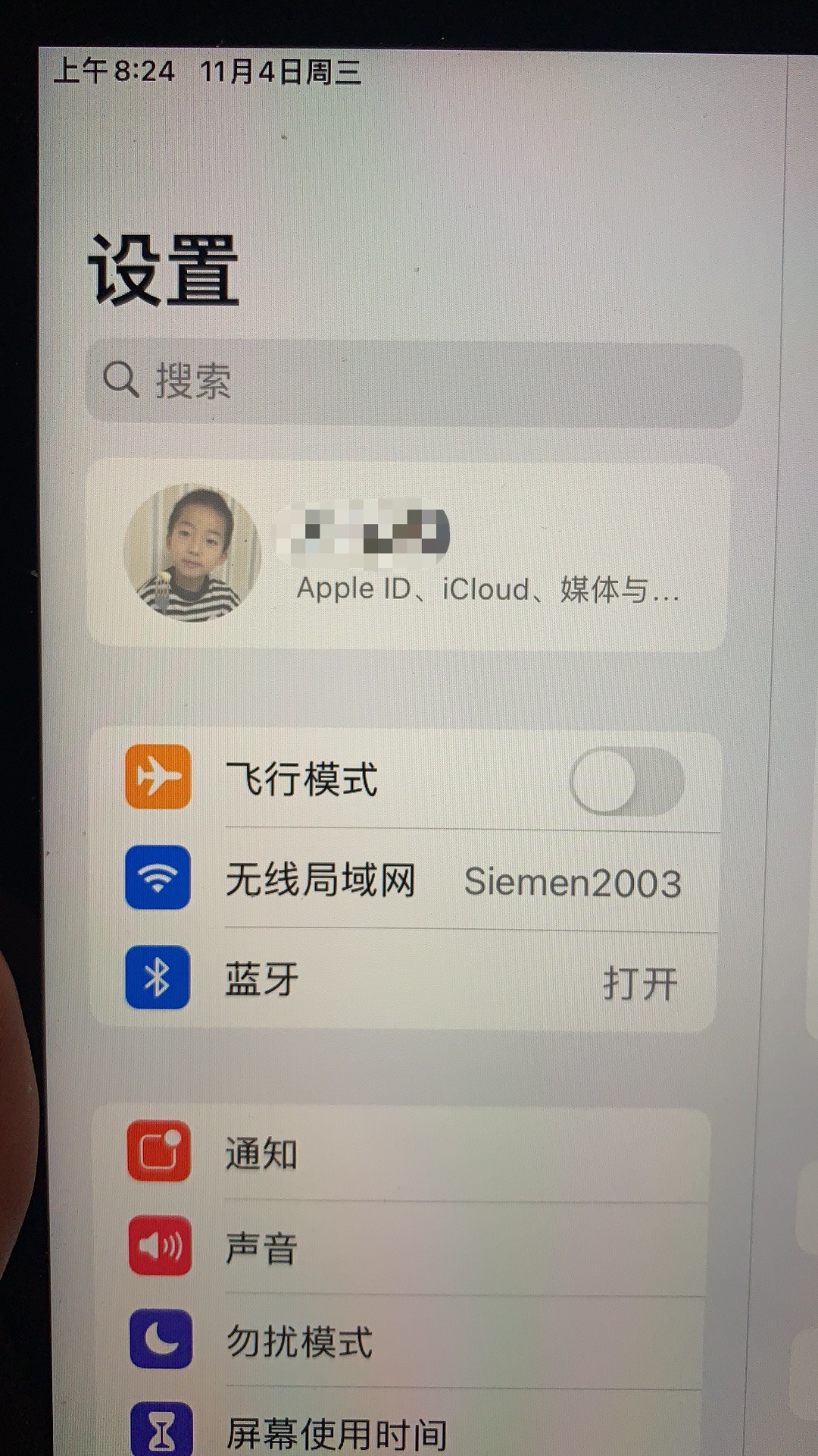 iPad上登陆孩子账号,再设置里登录信息的地方就会灰色无法点击