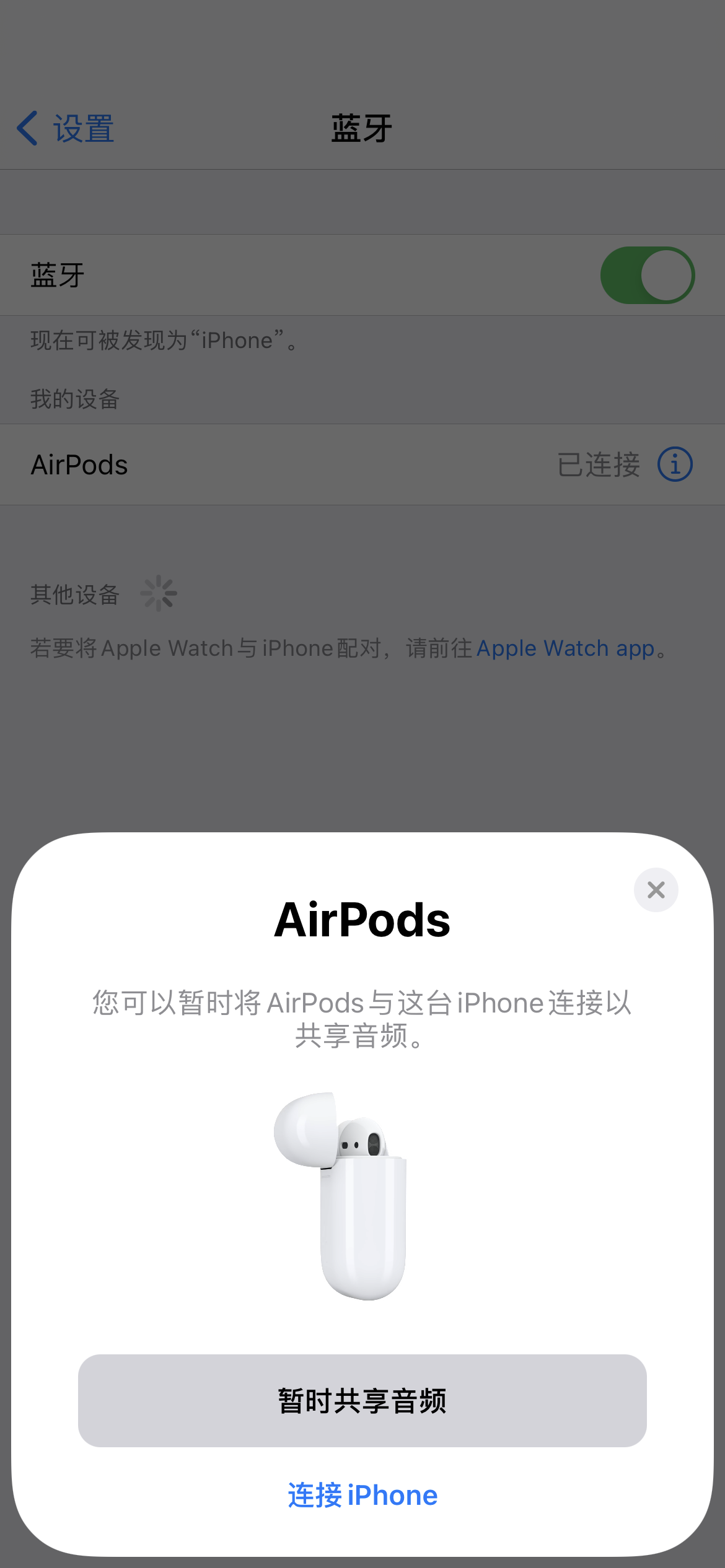 第一次连接好了,之后第二次连接,弹窗显示不是你的airpods,或者显示共享什么的,之后每次连接都是这样