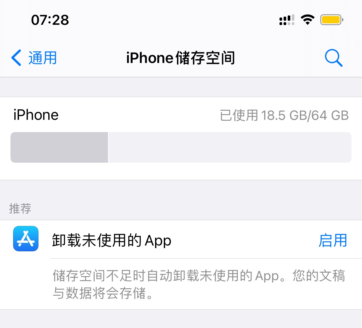 遇上建议1~5项均有尝试,仍无法解决,第6项未有实施。通过线上交流,发现这个只是个别问题,有XSM 64G、256G的用户升到iOS14.2后存储空间状态条是正常的