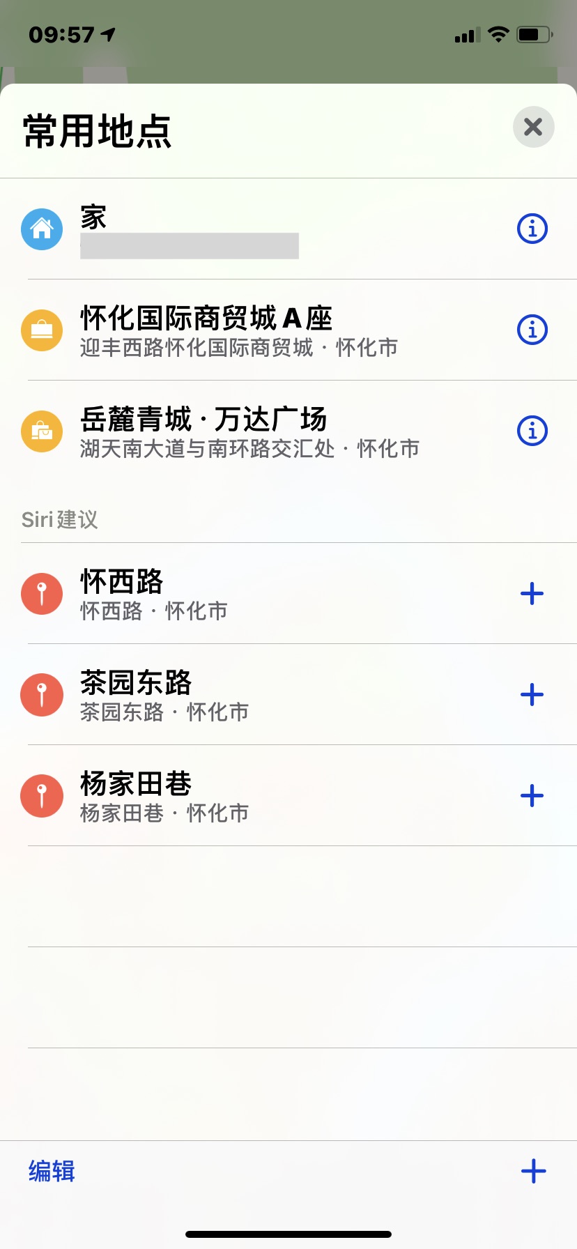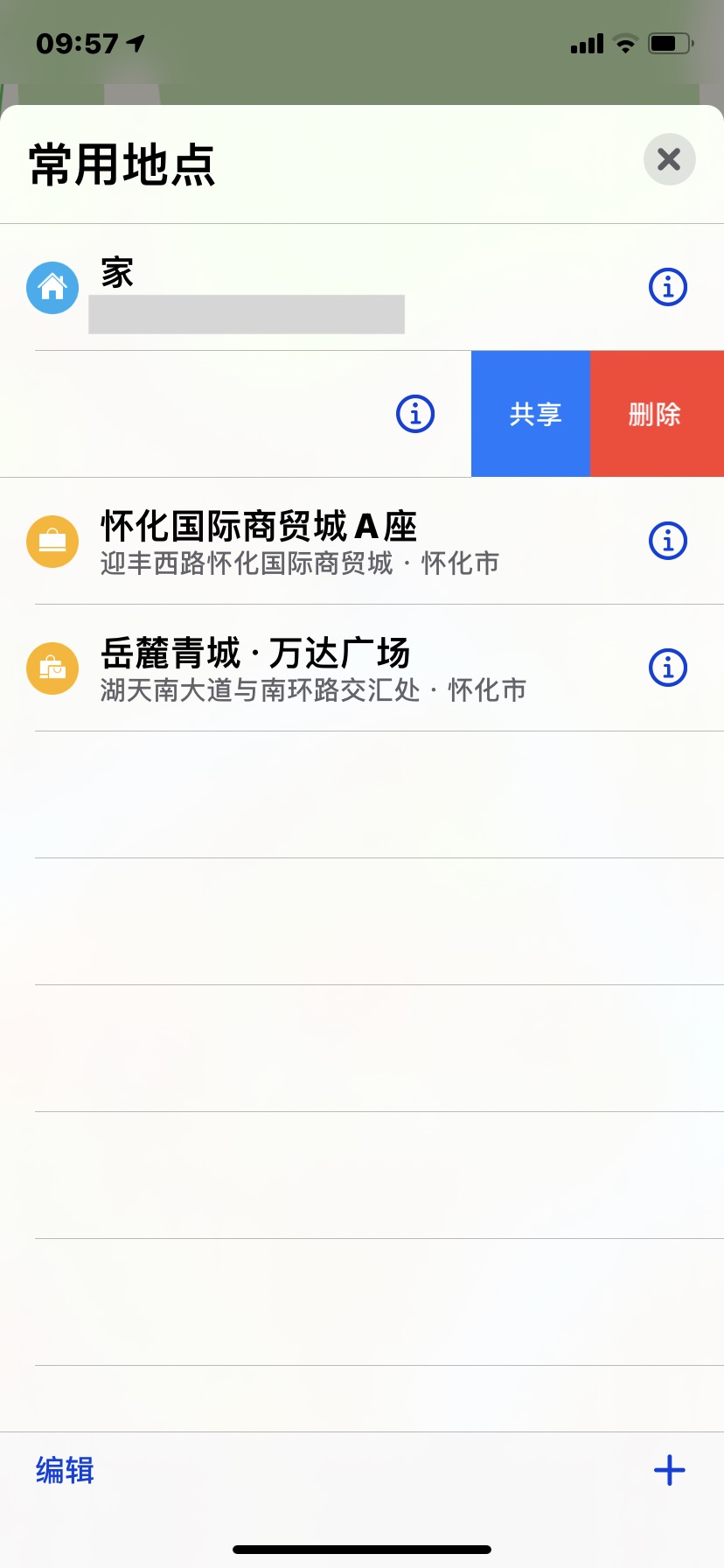地图里面添加了常用地点,然后不能删除,也不能修改