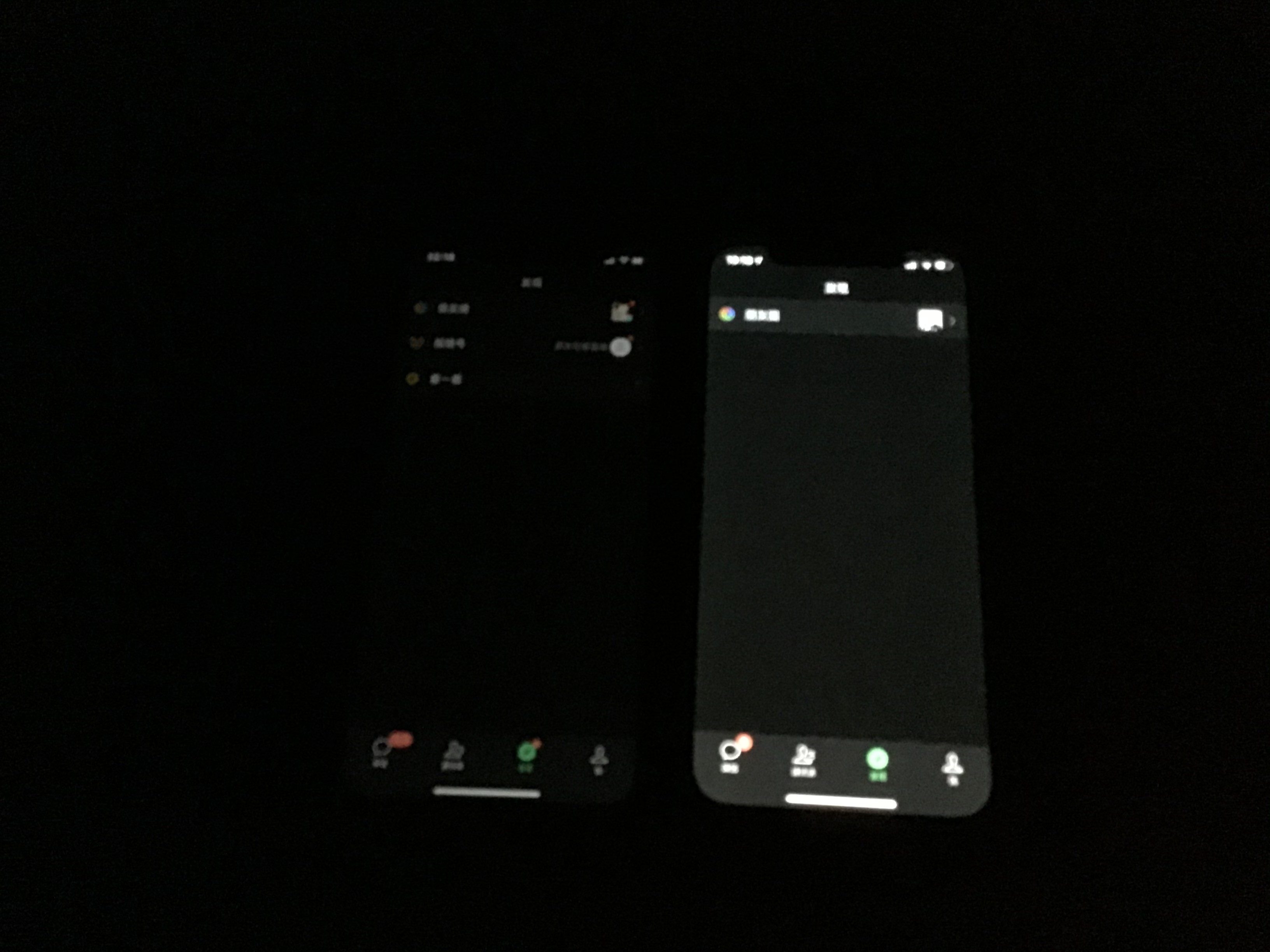 * iPhone亮度为20%到50%左右的深色模式的深灰色背景。