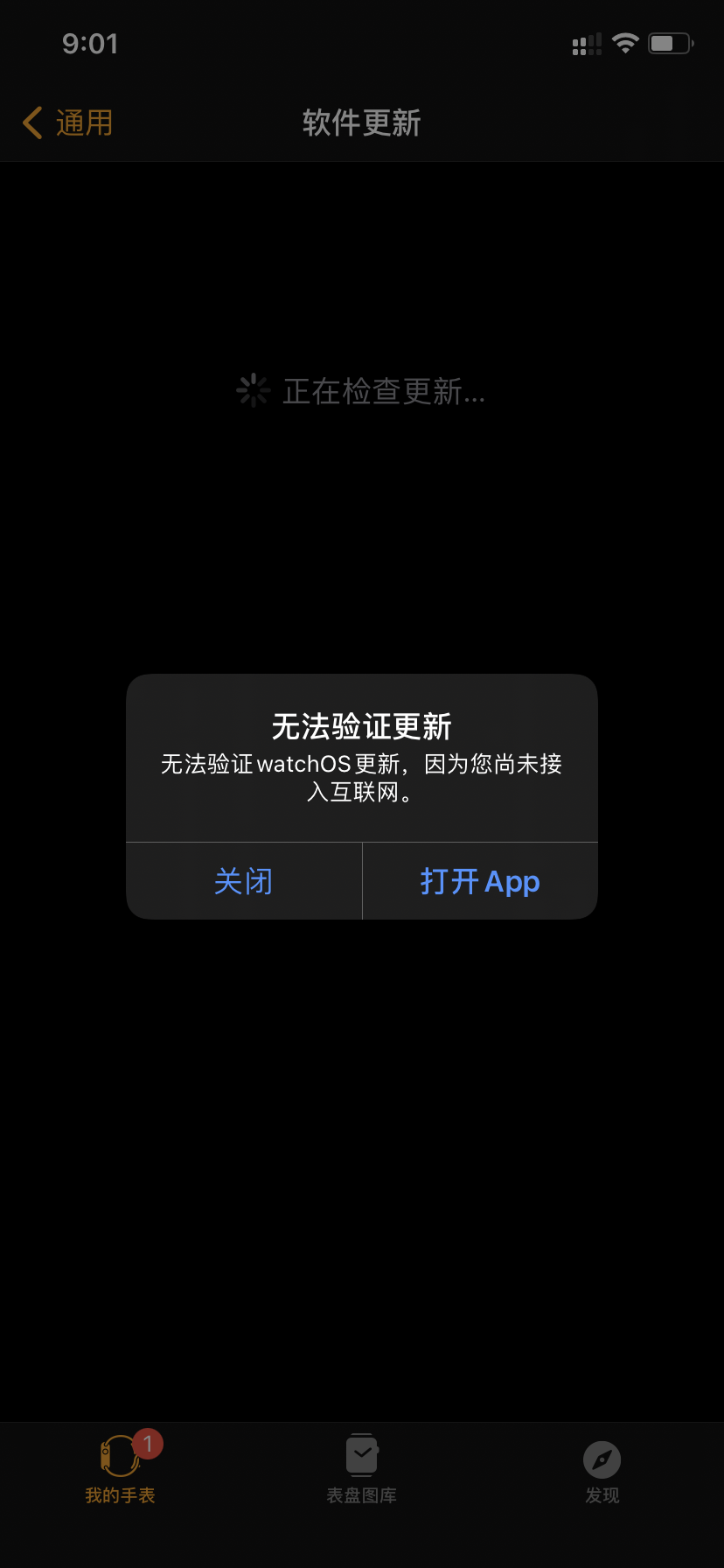 苹果手表更新OS时显示无法验证更新 因为您尚未接入互联网