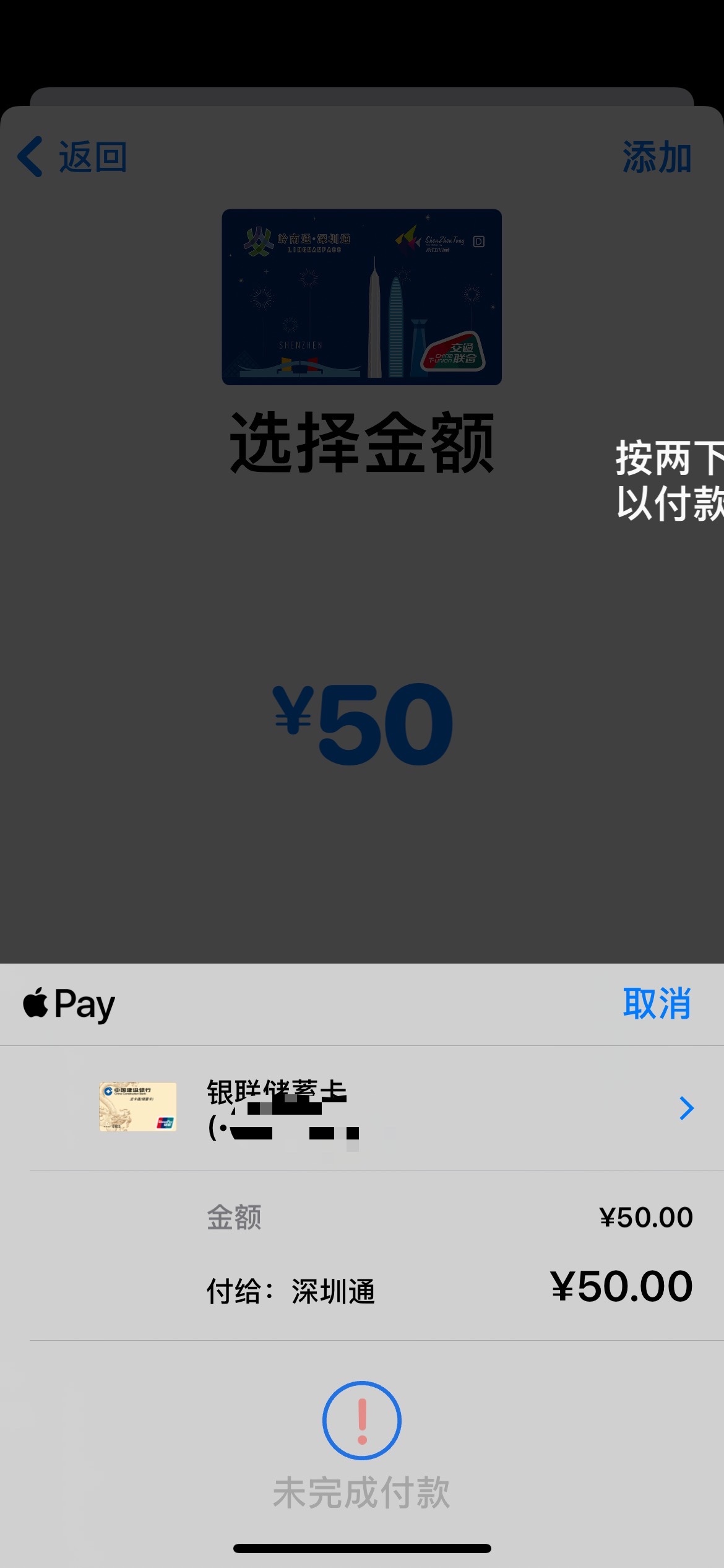 iphone12无法添加深圳通怎么回事,一直付款失败