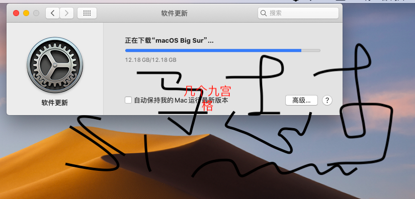 升级big sur卡住,进度条不动。