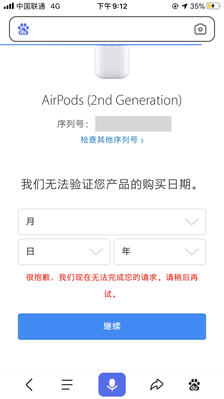 AirPods2在官网无法验证激活日期