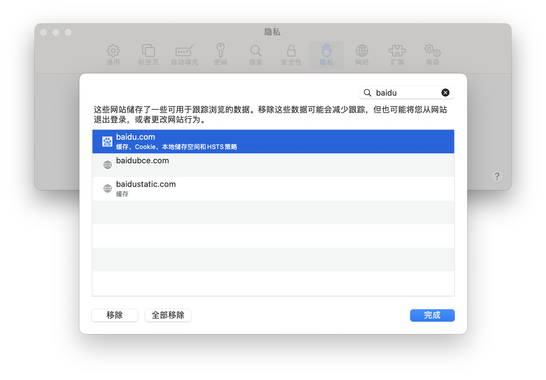 以下用户的用户个人资料: SirisK SirisK 用户级别: 级别 2 252 积分 2020年11月16日 下午6:09 回应 依然ooo 我认为可能是Cookie导致的问题,可以在Safari偏好设置(快捷键command+逗号:⌘,)选择“隐私”然后选择“管理网站数据...”,搜索baidu并移除相关cookies再重启Safari尝试(快捷键command+Q:⌘Q)。 回复 链接