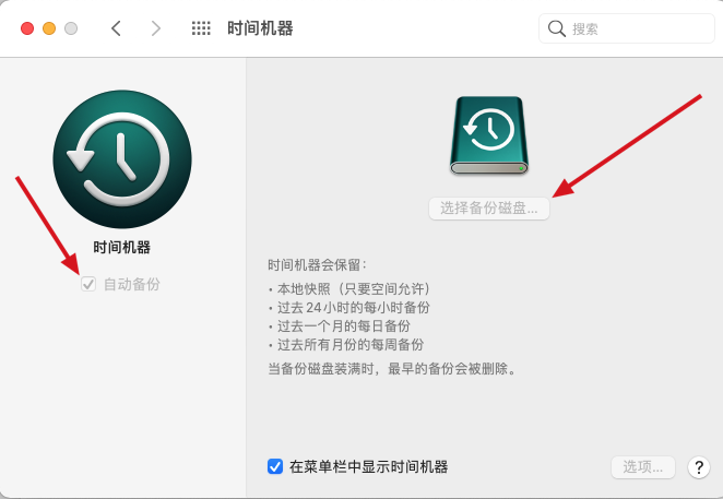时间机器 “选择备份磁盘” 按钮灰色不可用 是为什么要怎么处理?