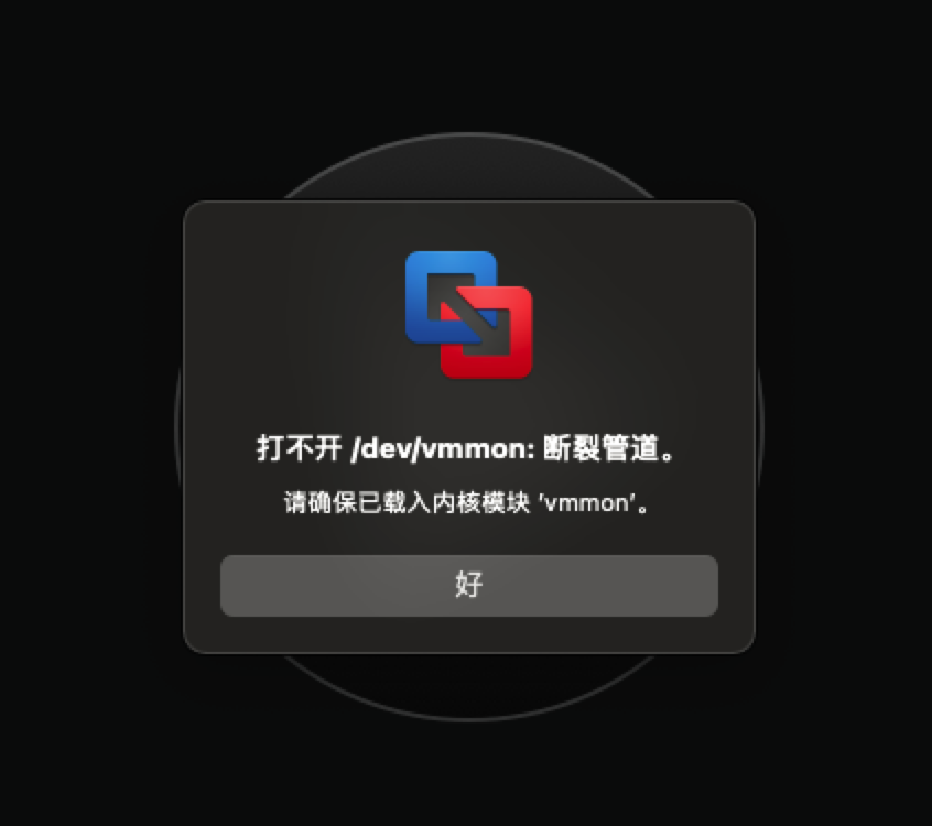 升级Big Sur以后VMware用不了了,运行VM连续弹窗提示: