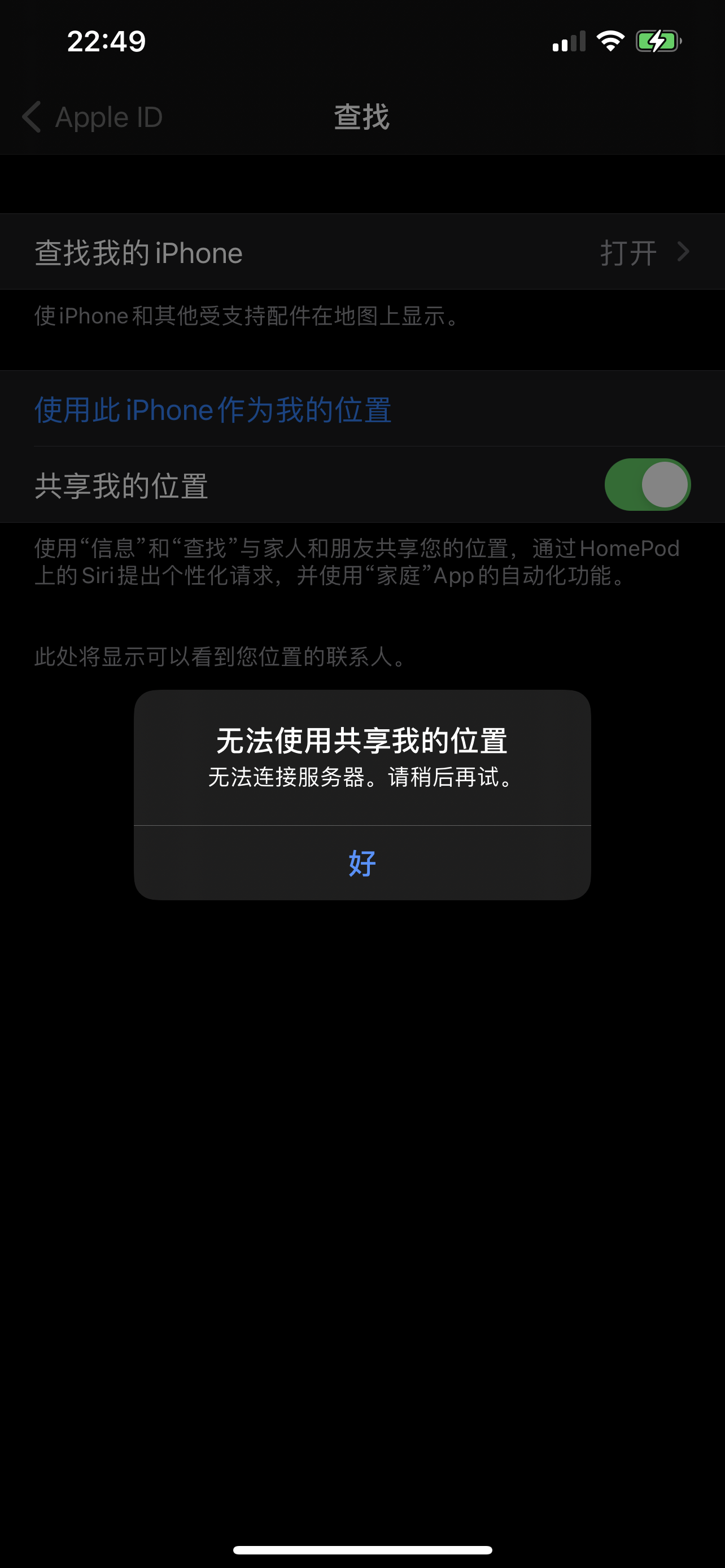 账号里面点击查找,提示无法使用共享我的位置是什么情况