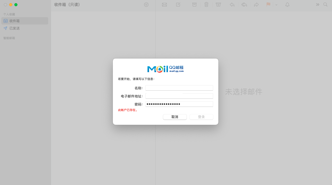 之前已经添加过qq 邮箱, 更换系统之后添加邮箱提示 此账号已存在, 但是点击邮件弹出选择添加邮箱