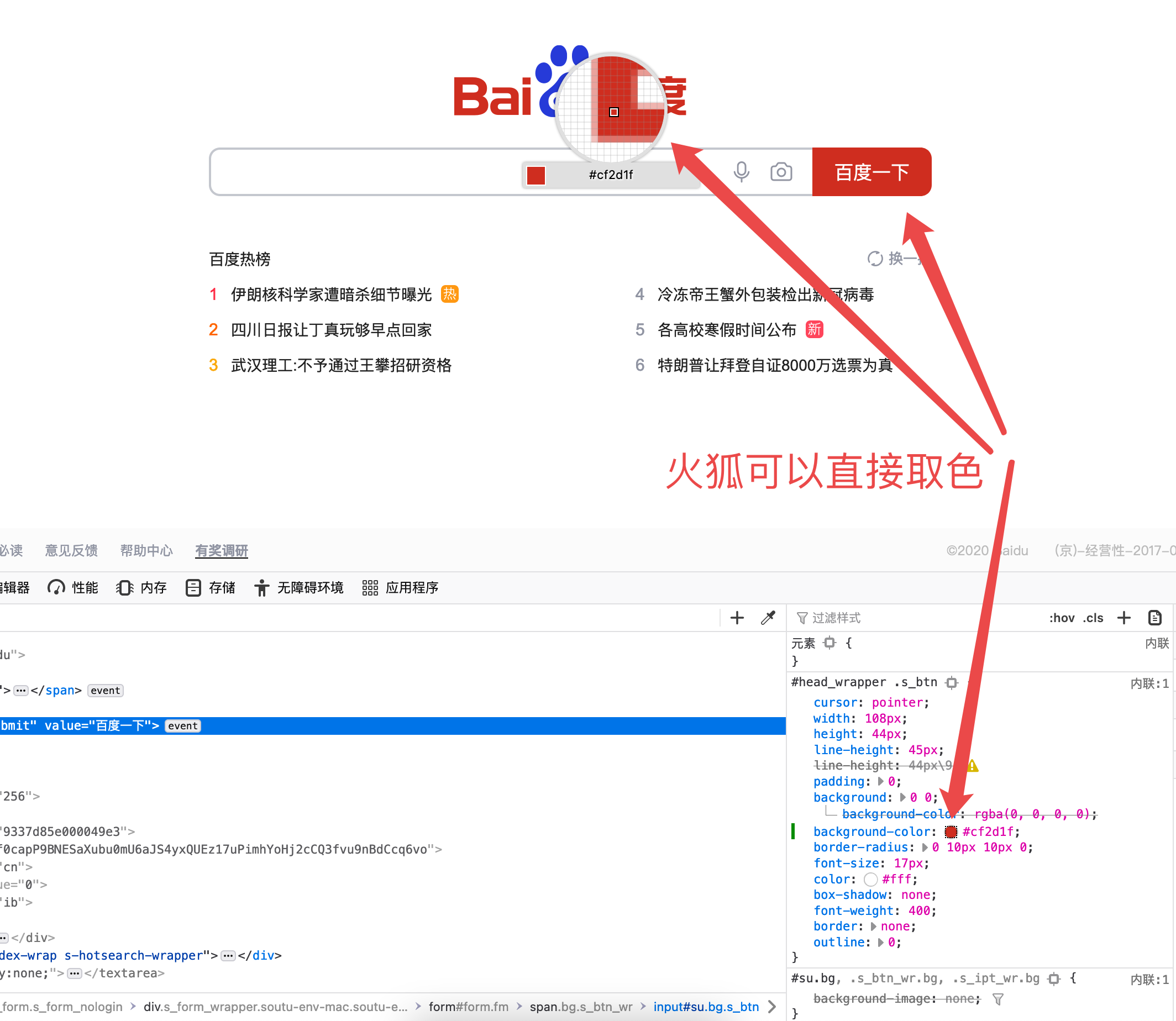 火狐是可以直接取色的,下面我截图 chrome 和 edge 的