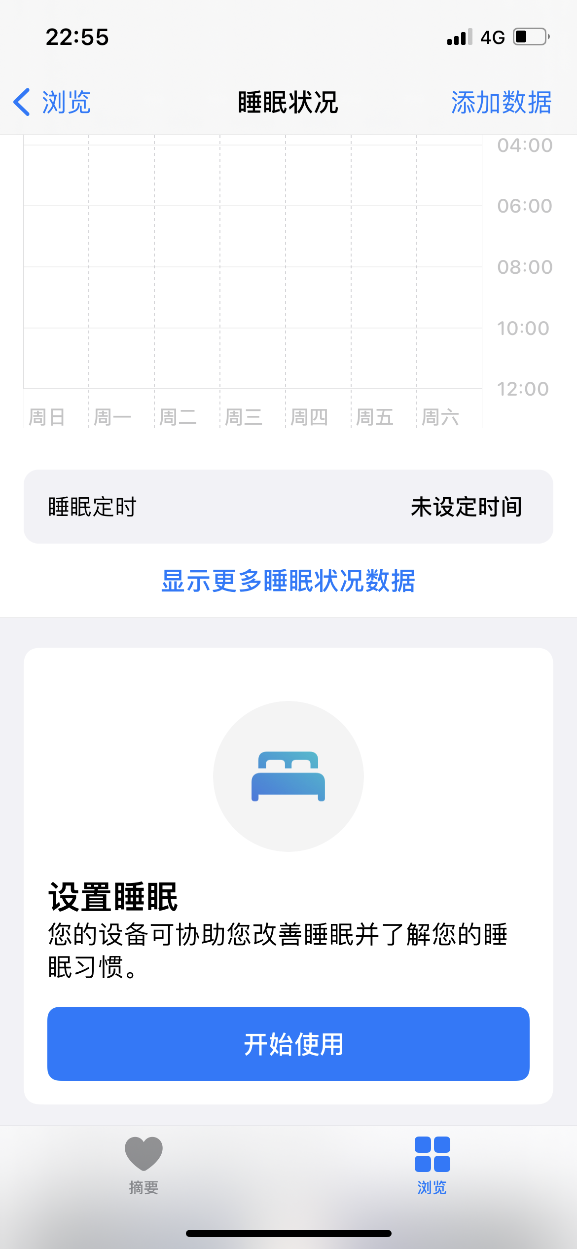 请进入健康,点击底下右侧的浏览,然后点击睡眠情况,查看是否有定时