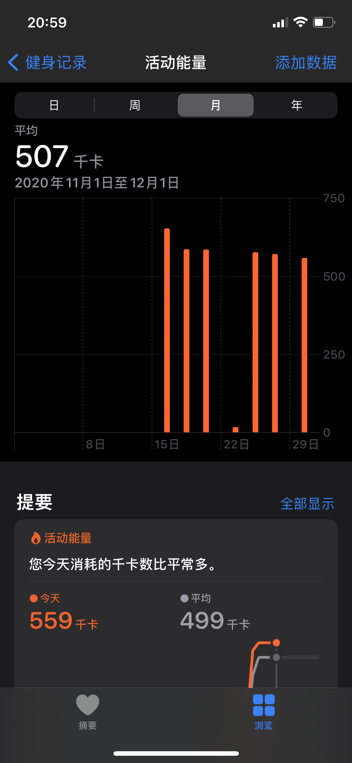 体重还有心率也是同步自小米运动,有五十多条数据,但不知道为何单单活动能量这项只有最近的六条
