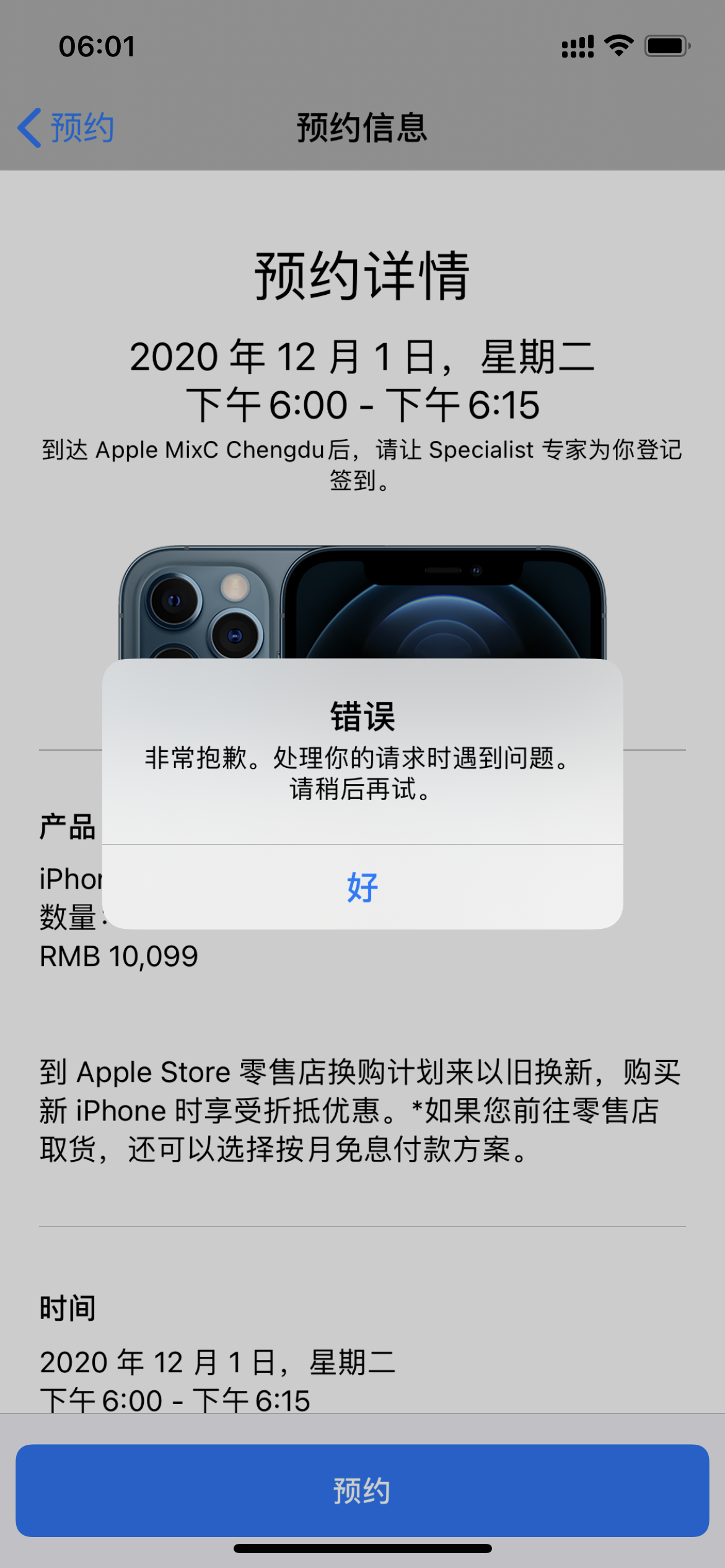 预约12pro max预约不了,提示遇到错误,稍后再试,更换账号也不可以