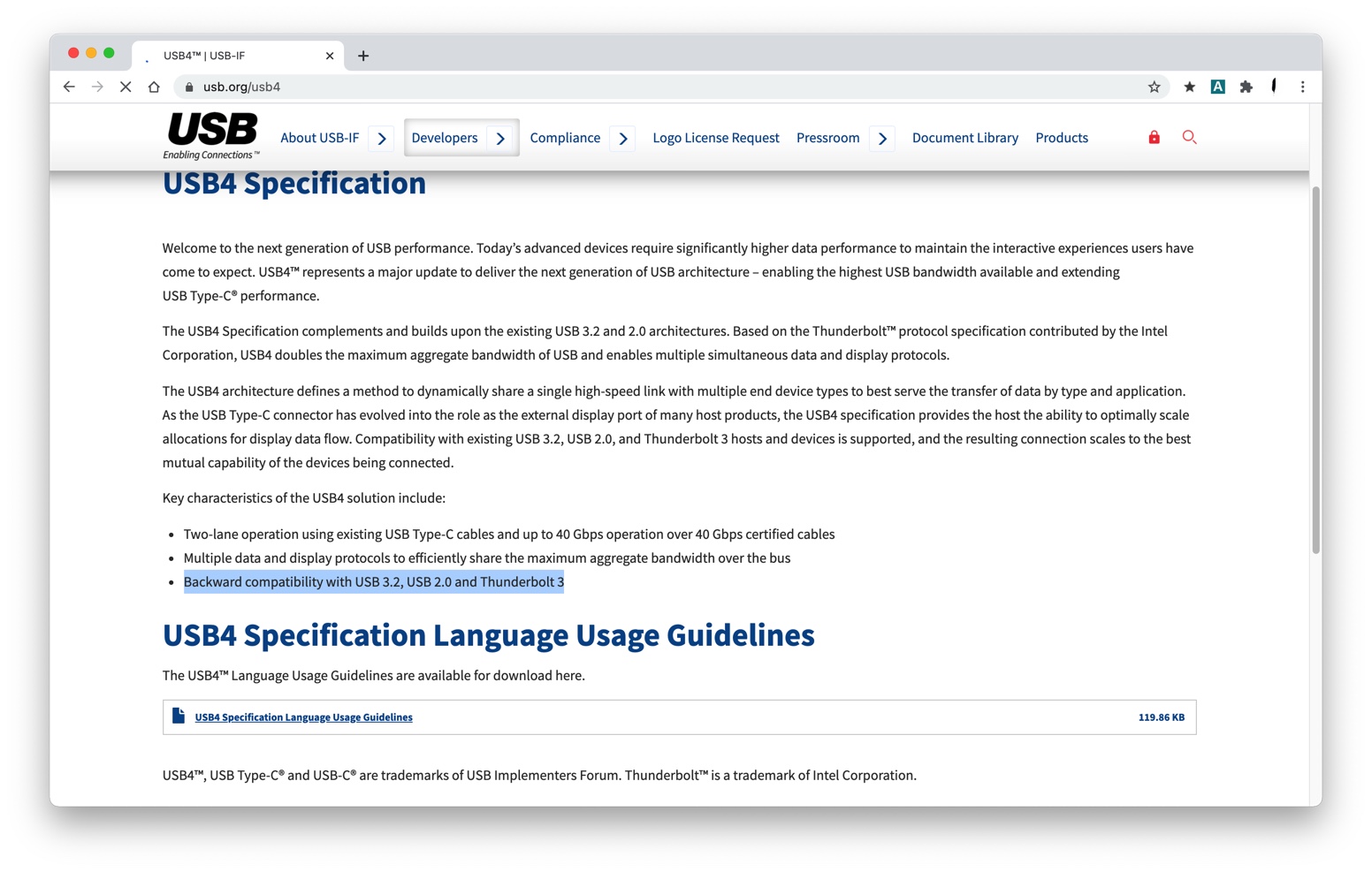 但是介绍中没有明确写支持USB4。查看wiki关于USB4的介绍,发现USB应该是向下兼容的。