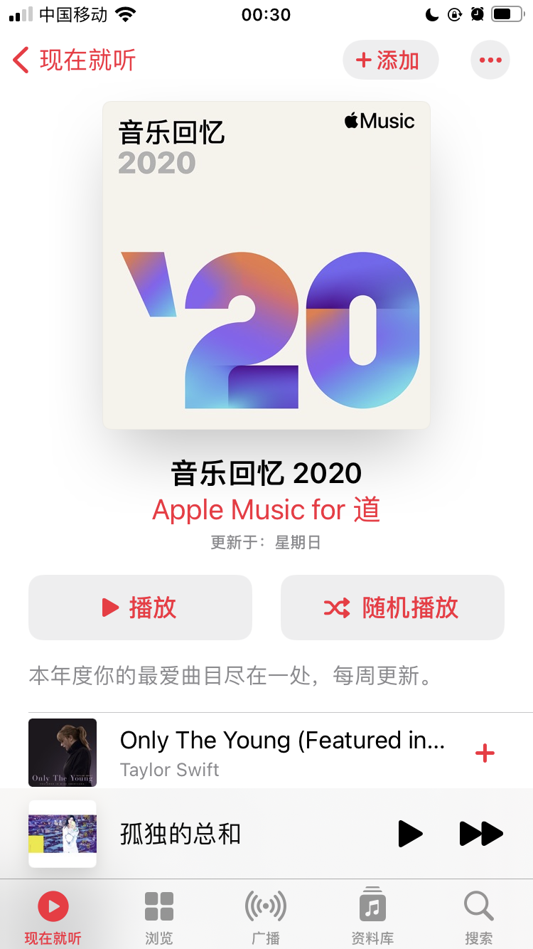 Apple Music上自动更新的“音乐回忆2020”歌单能否修改
