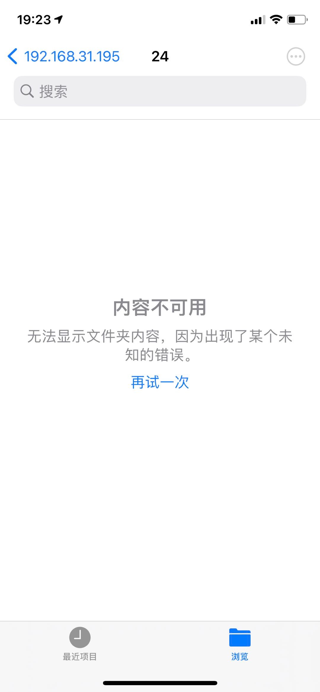 win10通过SMB共享的文件,在ios14.2系统下通过“文件”APP打开一次后,之后再次打开共享的文件,可以看到共享的文件目录,但是打开文件夹时显示“内容不可用,无法显示文件夹内容,因为出现了某个未知的错误”。在“文件”APP中无法重置或者删除“已共享”项目下的SMB链接。同时,在“ES文件浏览器”APP中可以正常打开SMB服务的文件并且使用!!!